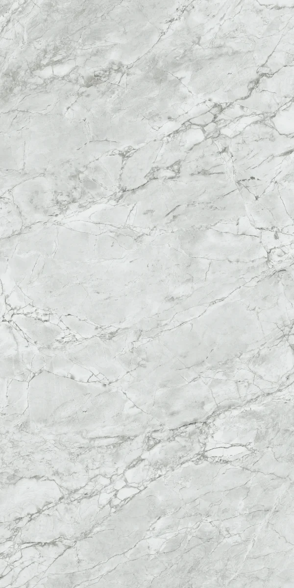 Dusted Grey Porcelain Countertop. Over-sized marbling and busy veining in an organic aesthetic of dusted grey clusters surrounded by whiter areas, in a daring neutral derived from nature and softened by nuanced undertones punctuated by white highlights, in Ultra-Rough finish.